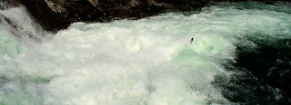 Ylempi Lönsdalelva on huomattavasti tasaisempaa kuin alempi pätkä, mutta tekemistä riitti silti. Joessa oli enemmän volyymia kuin missään reissun aikaisemmissa joissa ja löytyipä pätkältä myös yksi aika kuumottava koski. Kantohommiksihan se meni, vaikka saksalaiset näyttivätkin edellä miten homma hoituu.